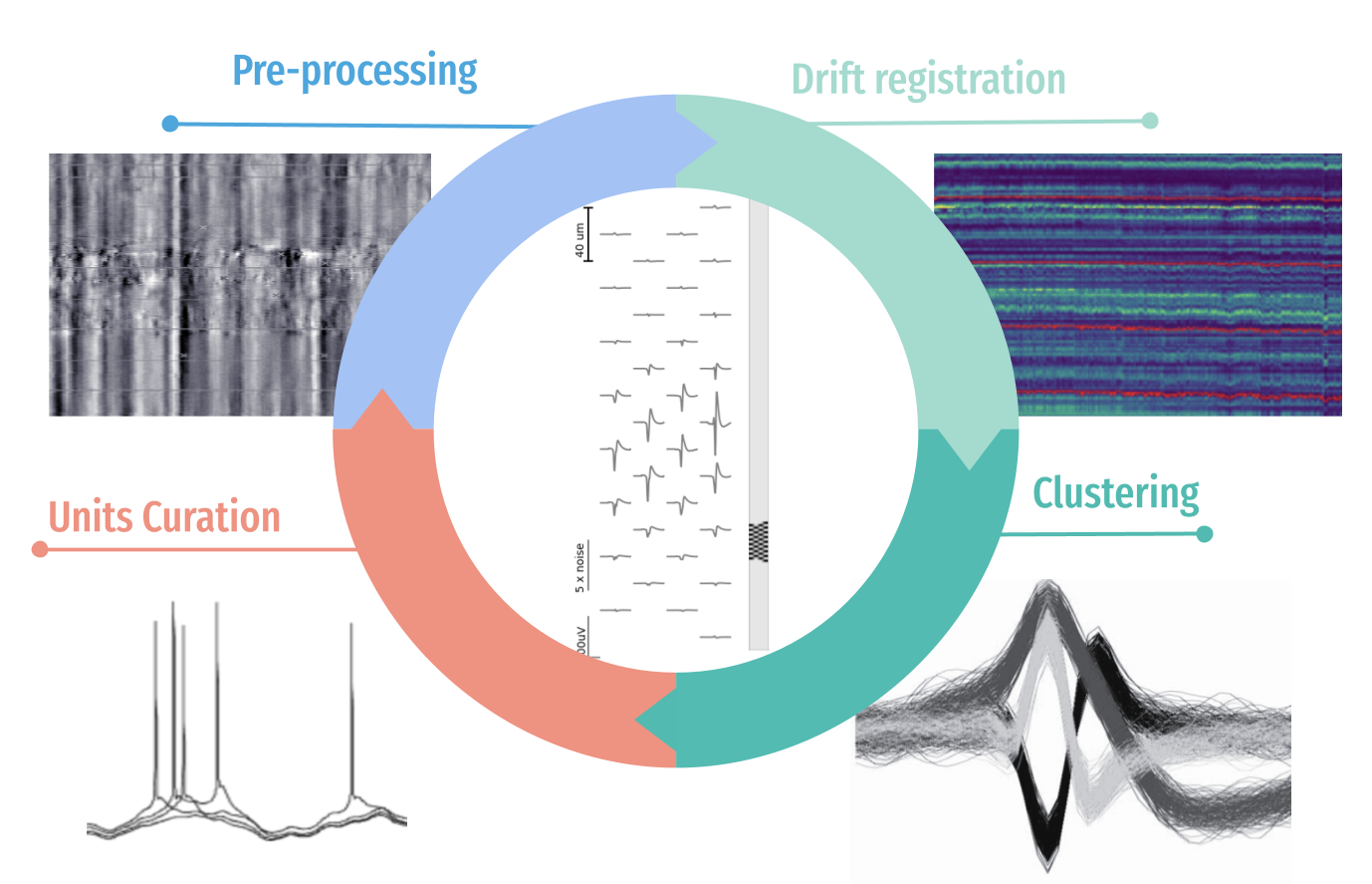 A spike sorting pipeline built to analyze data from large silicon probe electrode arrays at scale.